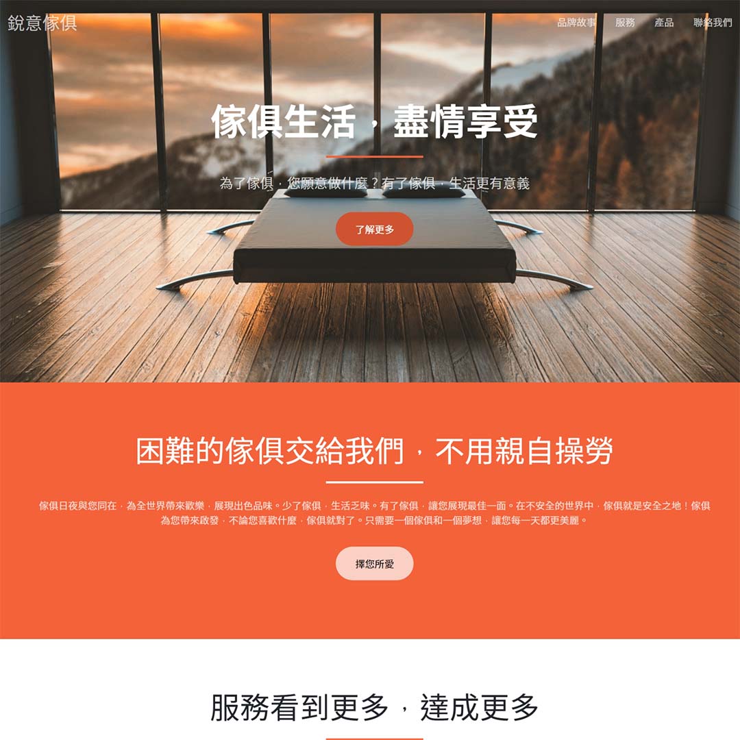 左木設計專注於協助客戶打造精緻而具有品牌特色的一頁式網站和形象網站,致力於捕捉客戶品牌精髓,並以簡約直觀的設計風格展現在網頁上。透過深入了解客戶需求,我們量身訂製專屬的設計解決方案,包括獨特的視覺設計、優化的用戶體驗和高度可達性。我們注重每一個細節,以確保網站在視覺上引人入勝,同時在功能性上提供卓越的表現。